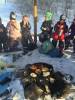 Stora och små barn på trollvandring i skogen.